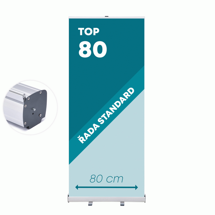 Rollup TOP 80 spadá do kategorie standardních rollupů a je určen pro běžné používání. Vzhledem k nízké váze a pevnému tělu se jedná o velmi kompaktní a snadno přenosný rollup systém, který dokonale plní svůj účel.