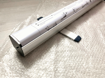 Součástí rollupu je poloteleskopická tyč a brašna pro jednoduchou přepravu. Rollup systém má otočné stabilizační nohy s plastovými náběhy pro dobrou stabilizaci a je určen pro banner 85 × 200 cm. Potisk fólie není součástí rollupu.